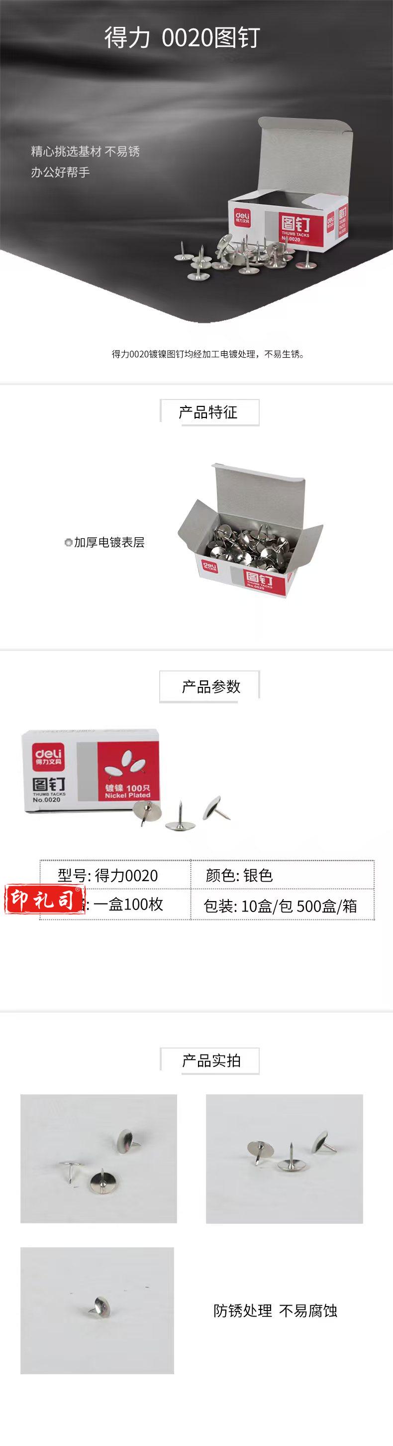 得力0020图钉 (100粒/盒)