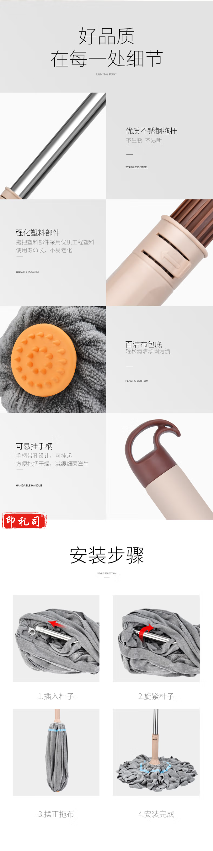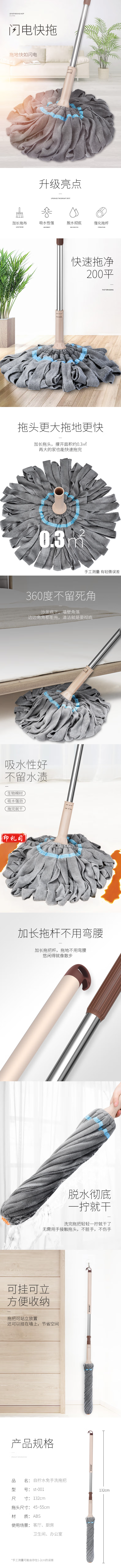 雅高 YG-034必卡锁拧水拖把 纤维材质头 免手洗懒人拖布