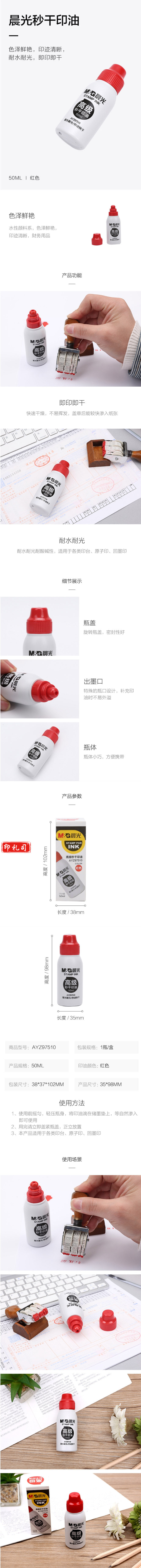 晨光AYZ97510 50ml高级秒干红色印油 财务专用耐光耐水印泥油 单瓶装