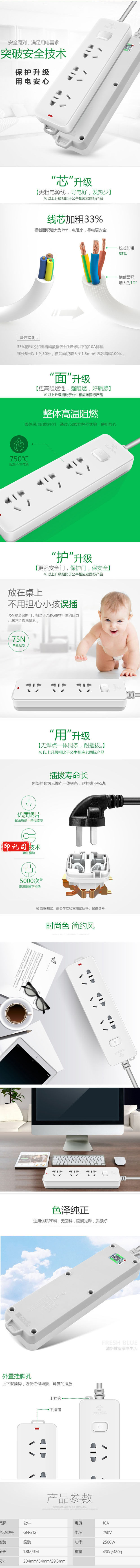 公牛GN-212 3米新国标插座/插线板/插排/排插/接线板/拖线板 3位总控全长3米