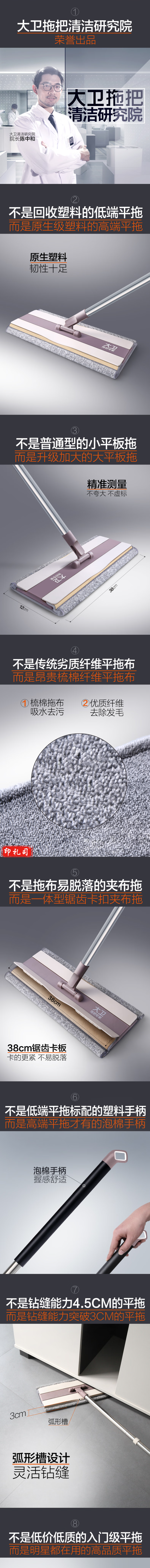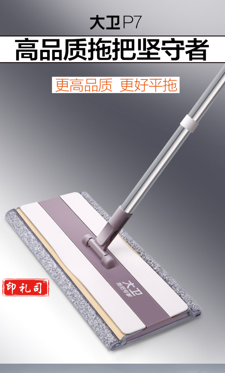 大卫P7 夹布式平板拖把擦地拖布 平拖干湿两用 平板拖把