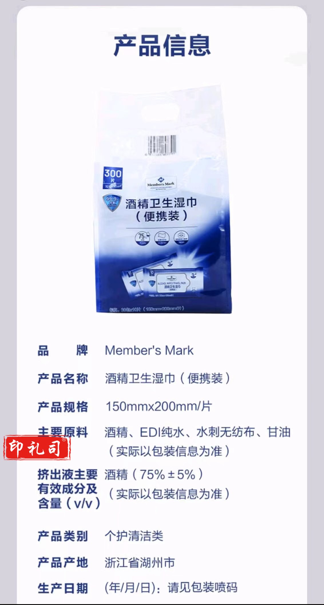MEMBEI'SMARK酒精卫生湿巾 便携装30包*10片