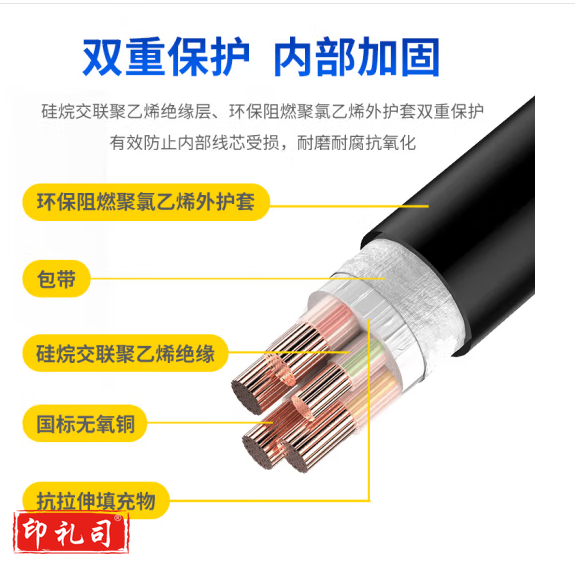 民兴电缆16平方铜芯5芯电线电缆电力国标铜芯铜线延长线 ZC-YJV-5*16-1m