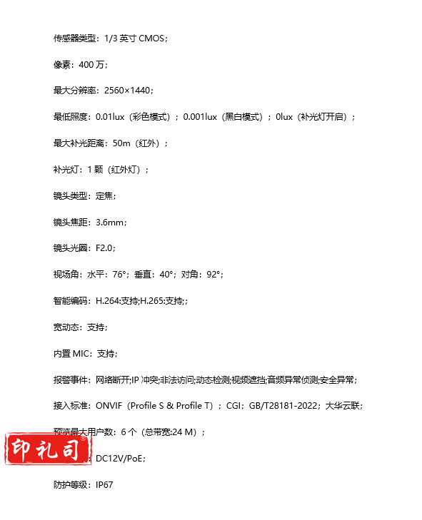 大华 400万红外定焦枪型网络摄像机DH-IPC-HFW3430M-A-I1