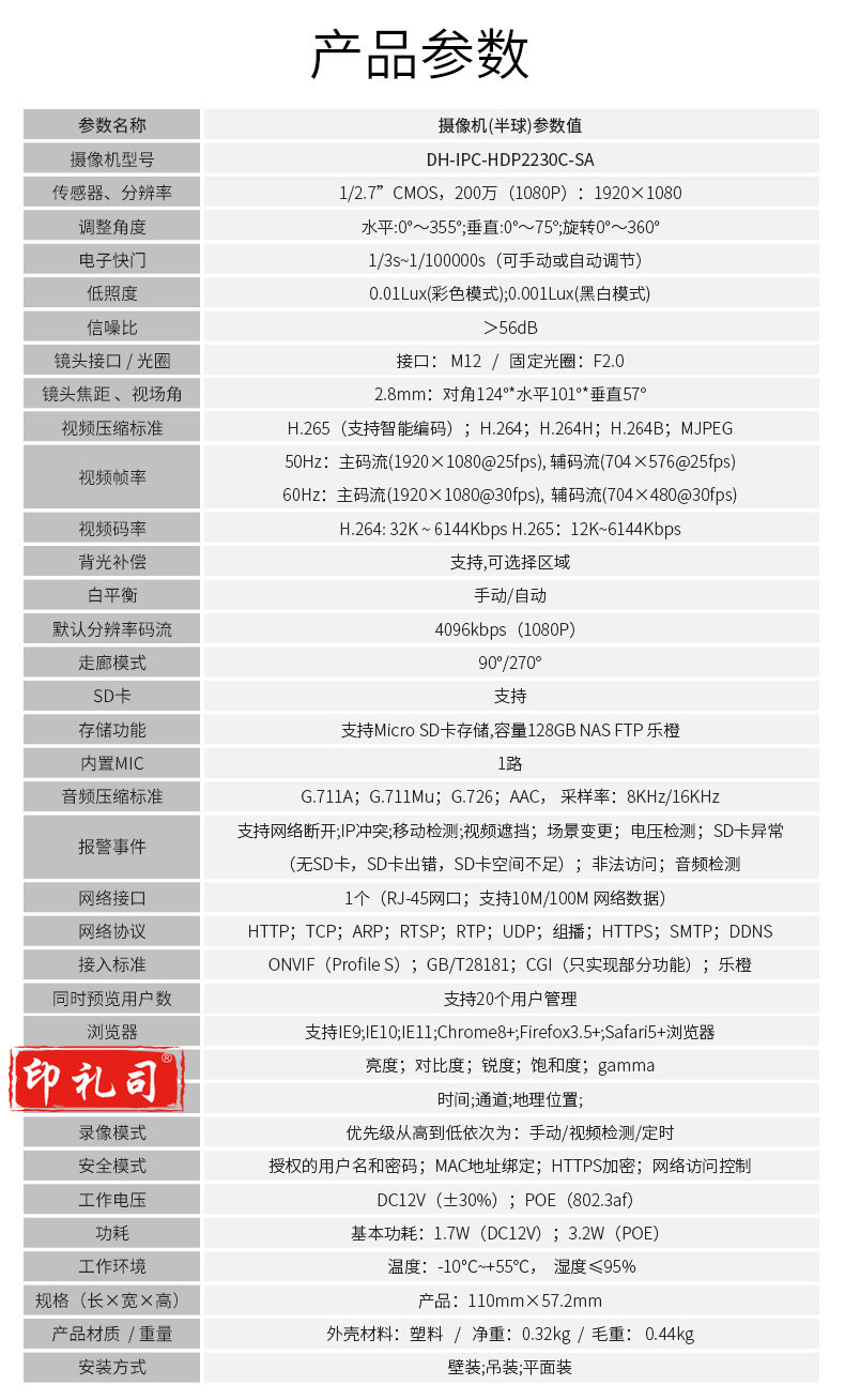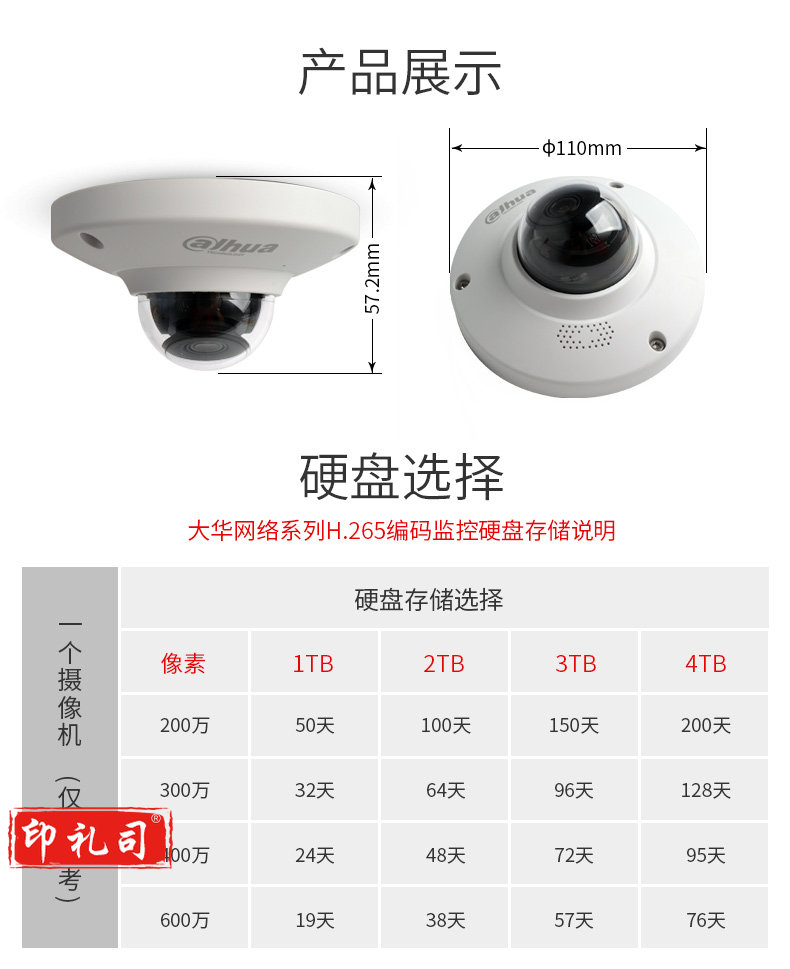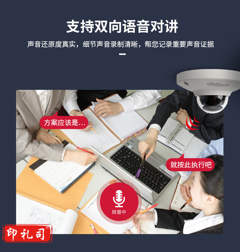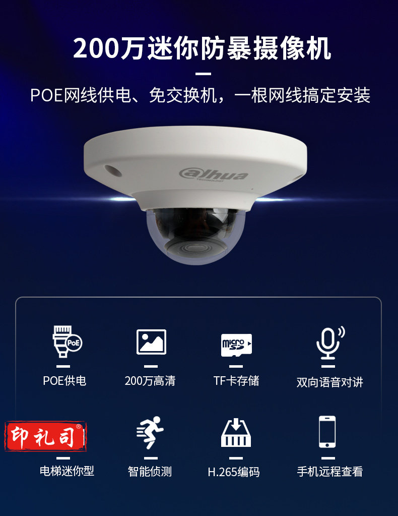 大华(Dahua)监控摄像头200万POE供电H.265防暴电梯半球摄像头内置MIC DH-IPC-HDP2230C-SA镜头3.6mm