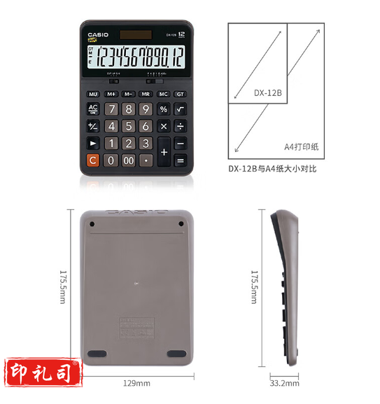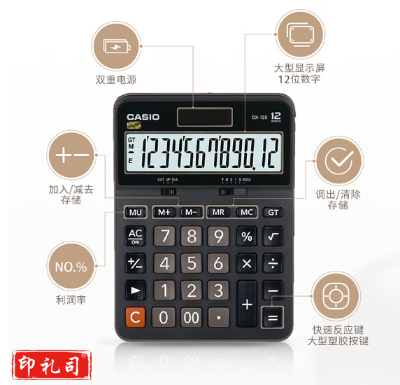卡西欧(CASIO)DX-12B 商务计算器 大型机 黑色经典款 商用