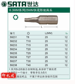 世达59234 5件套6.3MM系列25mm长花型旋具头T20 计价单位:套