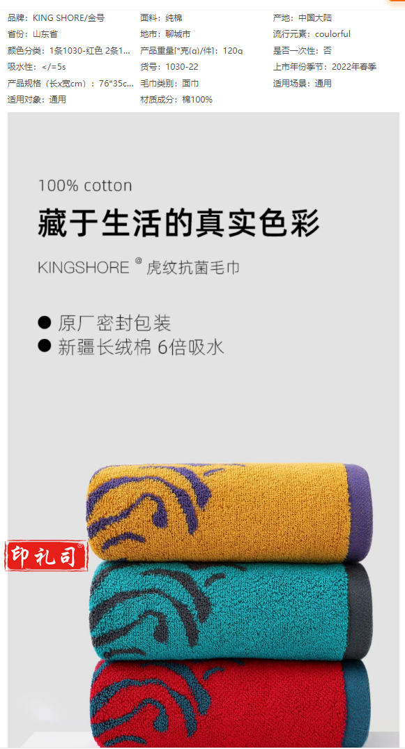 金号毛巾4A级抗菌纯棉面巾A类时尚色彩虎威美学设计毛巾全棉
