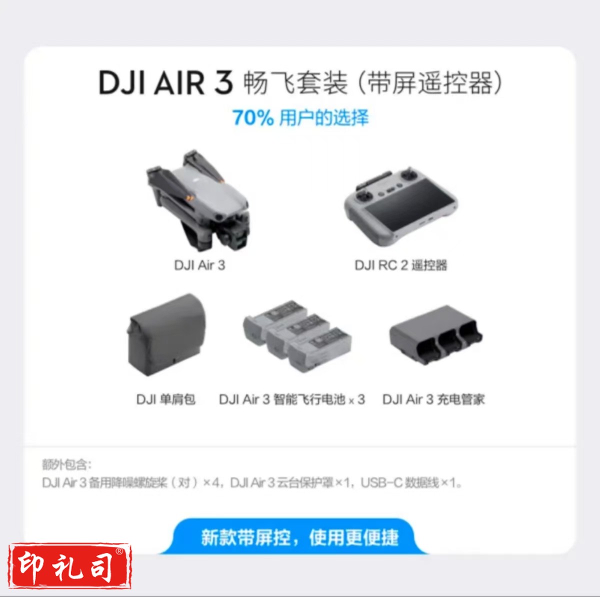 大疆 DJI Air3 畅飞套装(带屏遥控器 三电)航拍无人机 中长焦广角双摄旅拍 高清专业航拍遥控飞机