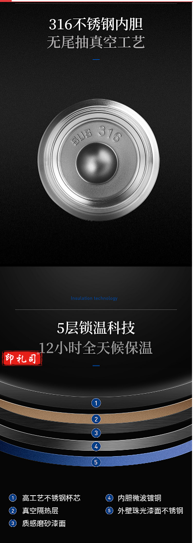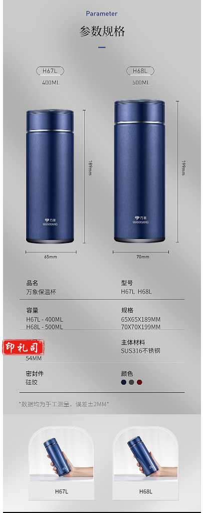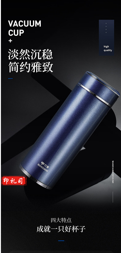 万象(WANXIANG)保温杯男女士杯子316L不锈钢真空水杯商务办公大容量茶杯500ML 青灰色