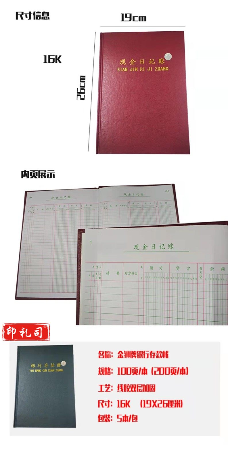金狮牌 银行存款账本 现金日记账 16K竖版100页财务会计用品:弘百弘
