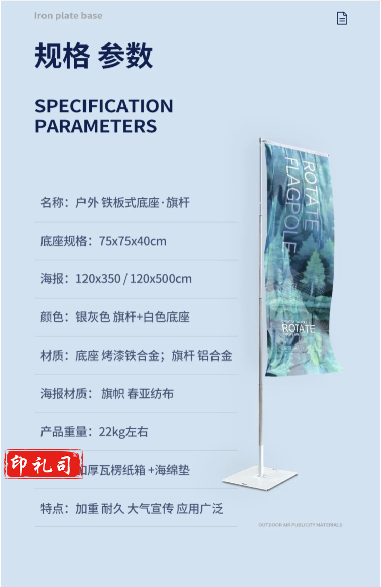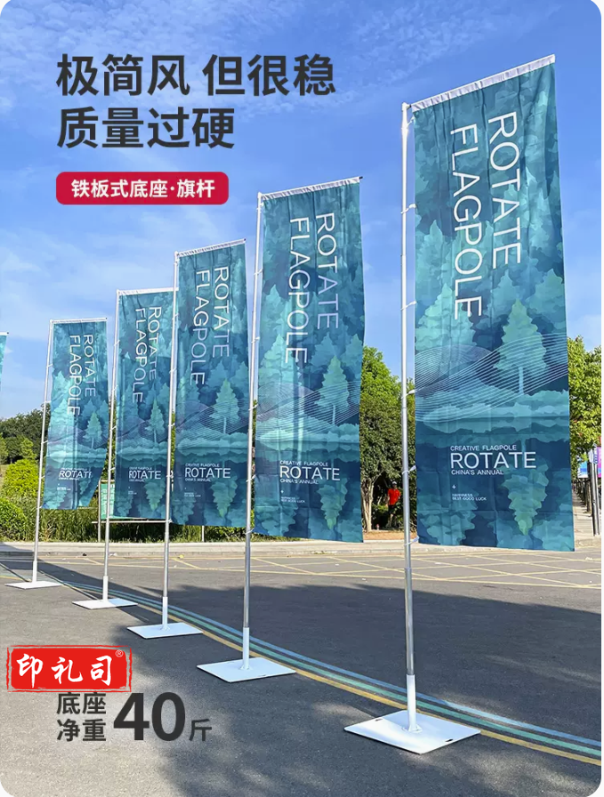 户外5米铁板道旗广告旗杆不锈钢道旗旗杆广告宣传旗杆白色铁板旗