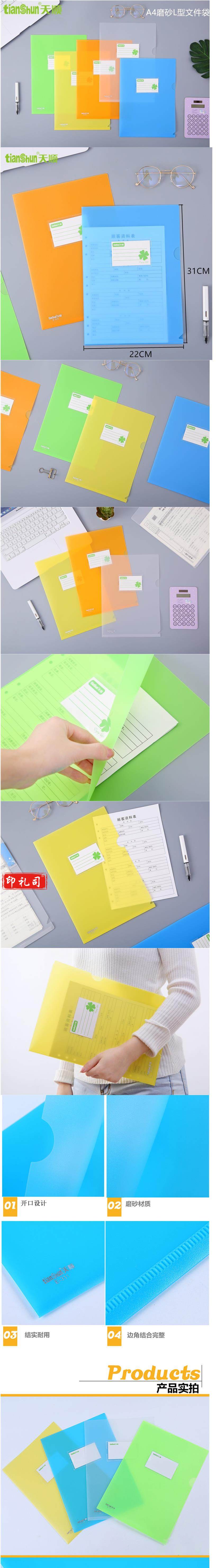 天顺 单片夹 L型文件夹二页文件套 磨砂单页夹 6个/包 白色透明款