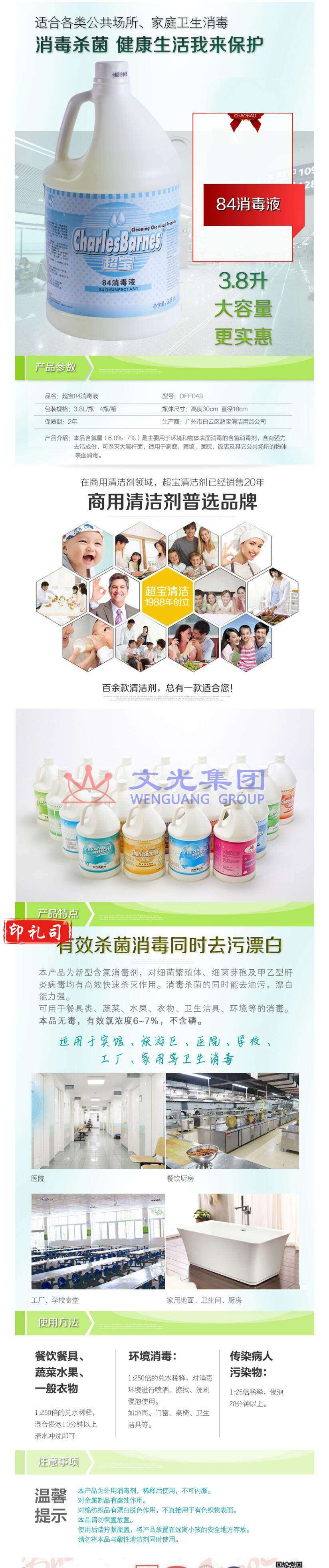 超宝 DFG043 3.8L/瓶 84消毒液 漂白水 除菌水 杀菌消毒水