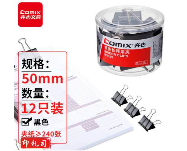 齐心(Comix)长尾夹票夹 黑色金属 1#50mm 12只/筒B3625