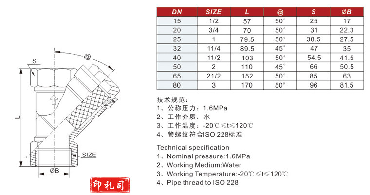DN40黄铜Y形过滤器1.5寸过滤阀门