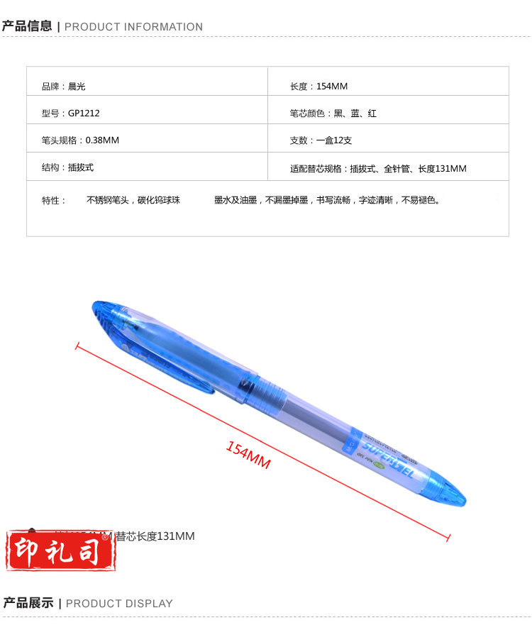 晨光(M&G)GP1212 中性笔 0.38mm 黑色 12支/盒 单位:盒