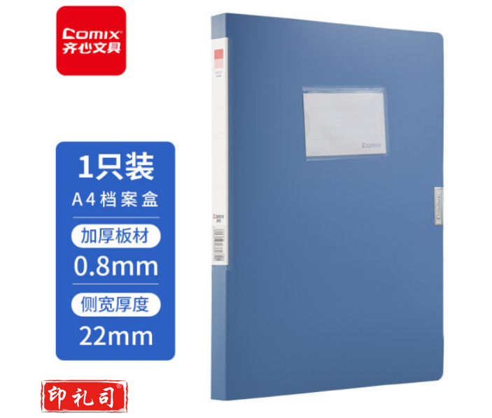 齐心(Comix)22mm牢固耐用粘扣档案盒/A4文件盒/资料盒 蓝色 办公文具A1242 TJHX03061112074346