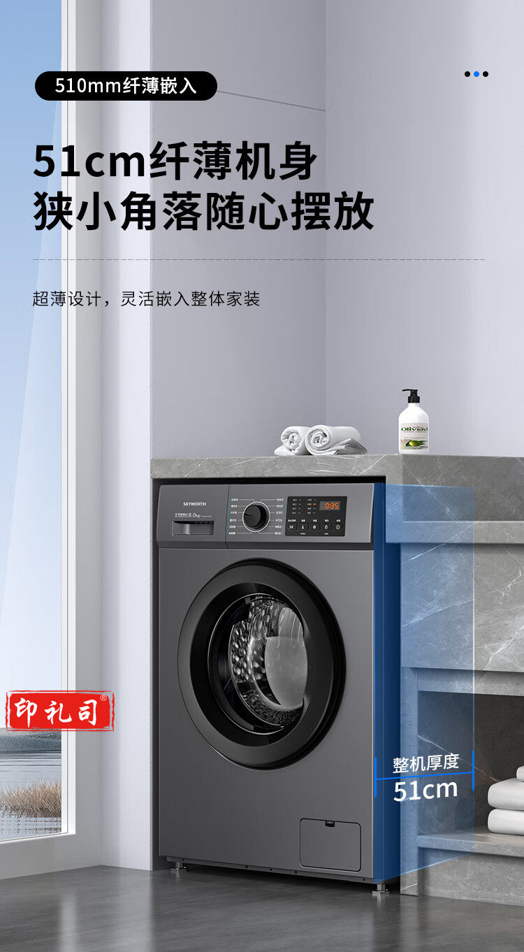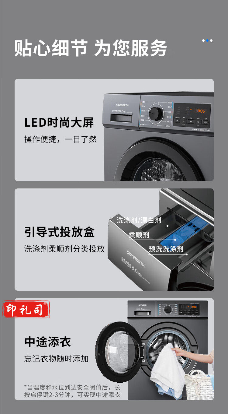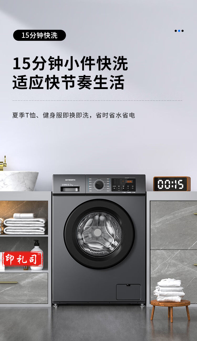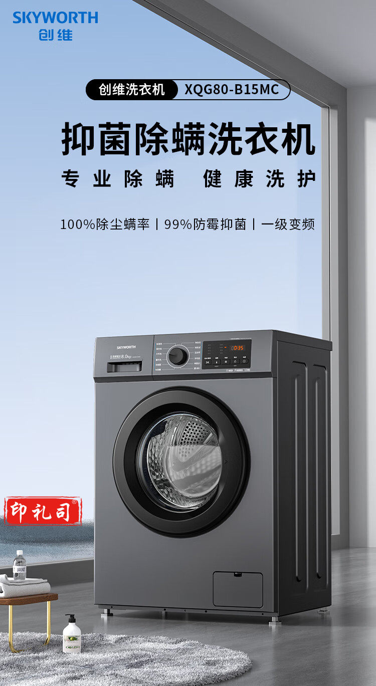 创维(SKYWORTH) 8公斤滚筒洗衣机全自动 变频电机 一级能效 XQG80-B15MC