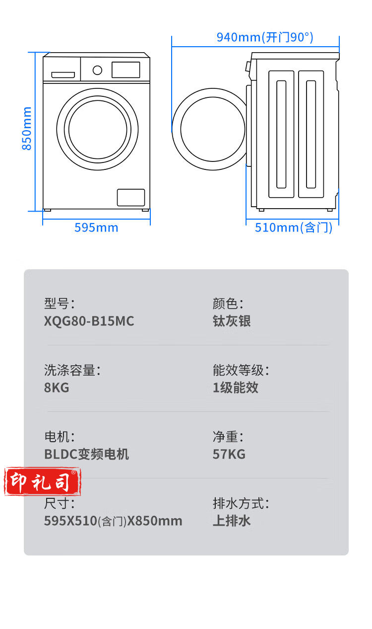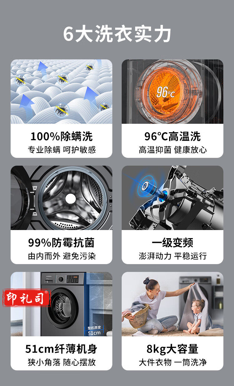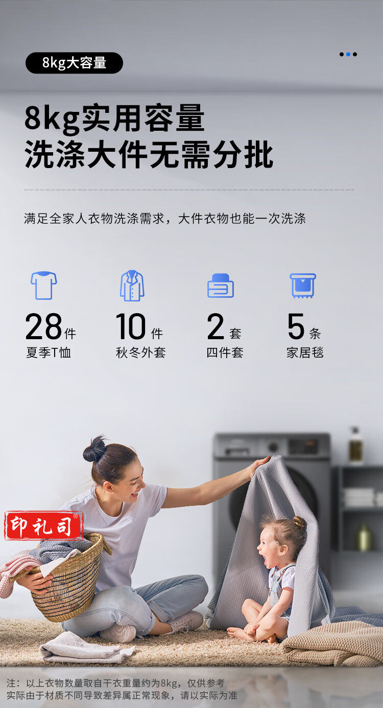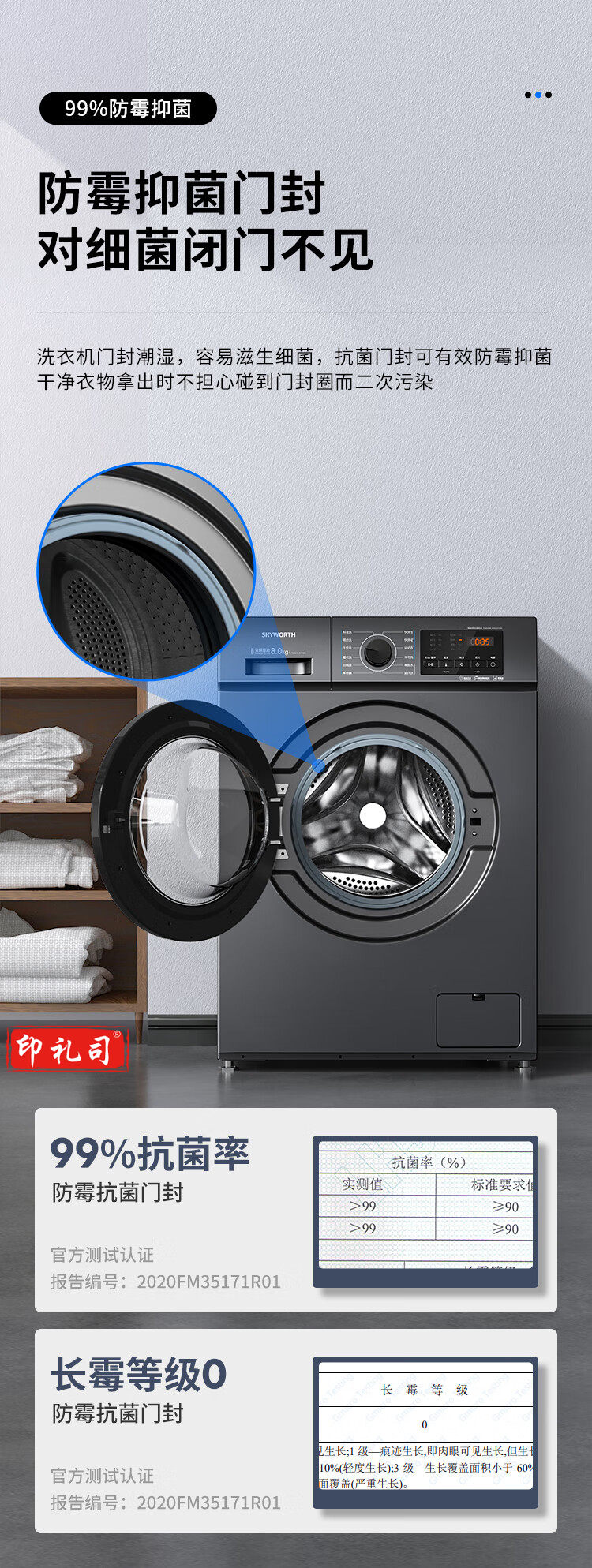 创维(SKYWORTH) 8公斤滚筒洗衣机全自动 变频电机 一级能效 XQG80-B15MC