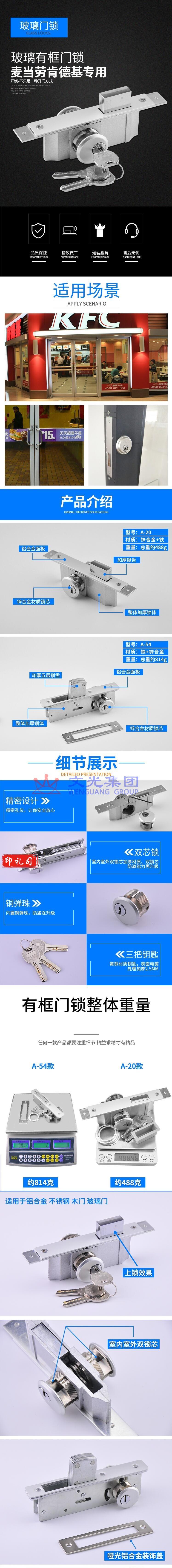 肯德基门锁 麦当劳门锁 平开门锁 铝合金门锁 玻璃门锁