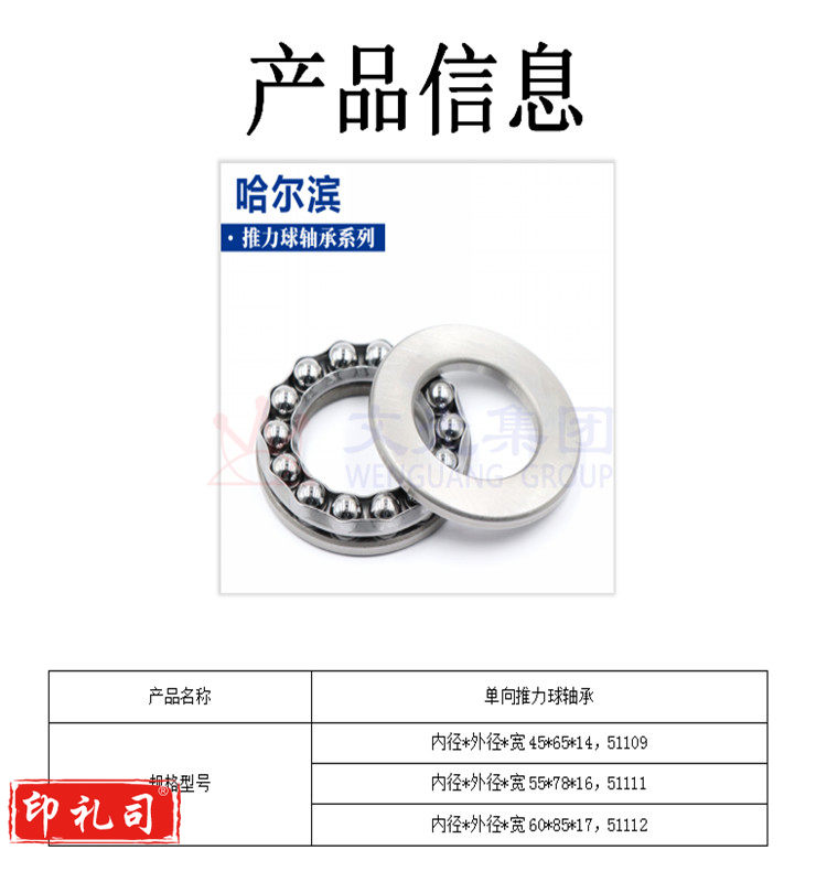 哈轴 内径*外径*宽45*65*14,51109 单向推力球轴承