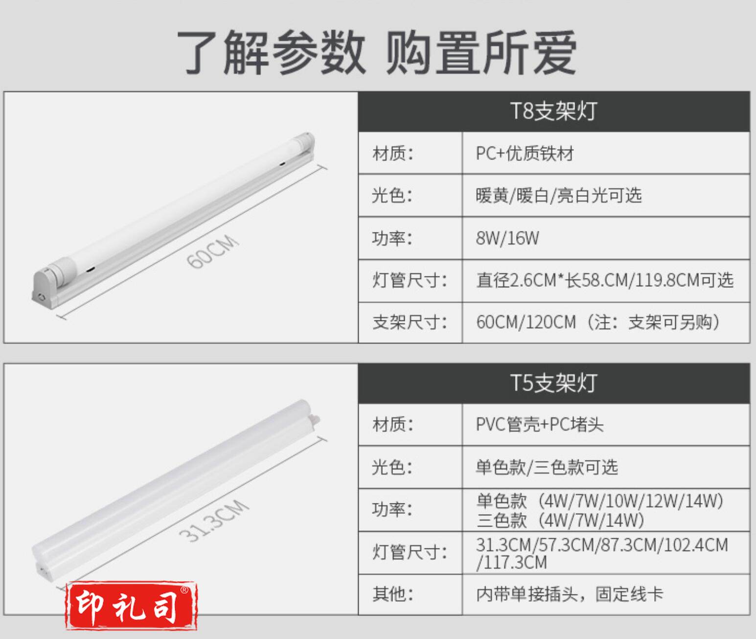 威诺华 LEDT5一体化支架灯16W1200MM 灯管白光