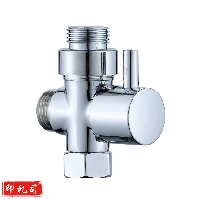 洁冠 花洒分水器淋浴配件快开三通一进二出黄铜分水阀 进水4分出4侧4