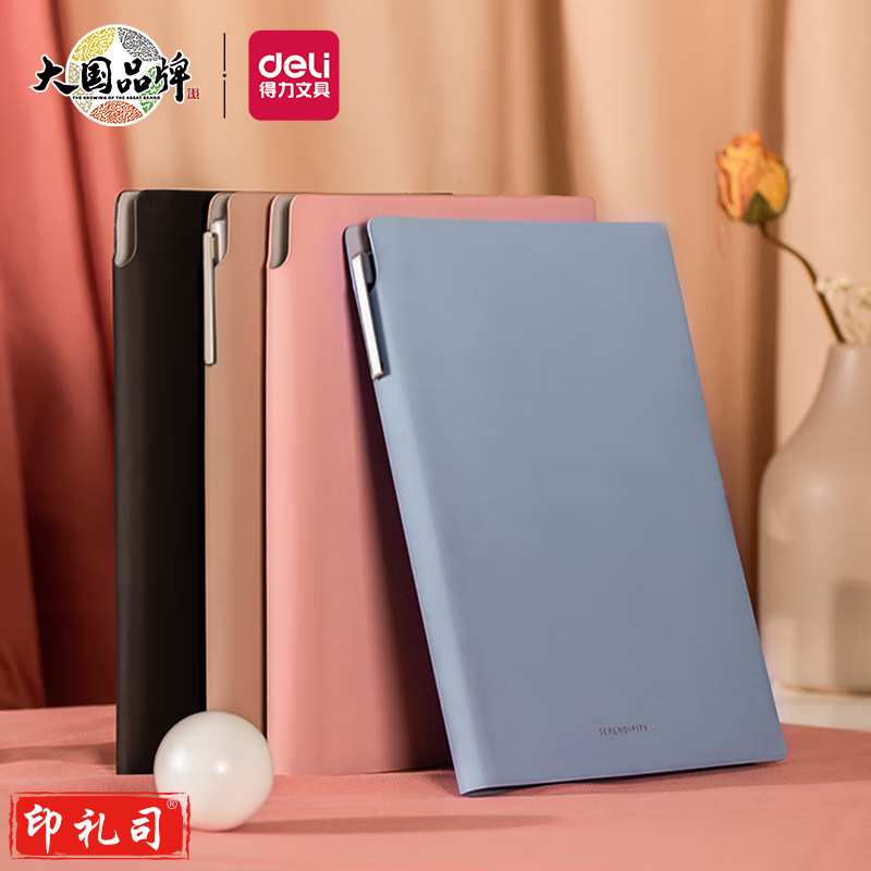 得力(deli)A5/112张莫兰迪色系可插笔软皮面本 肤感雅致记事本日记本笔记本子文具 22290红色