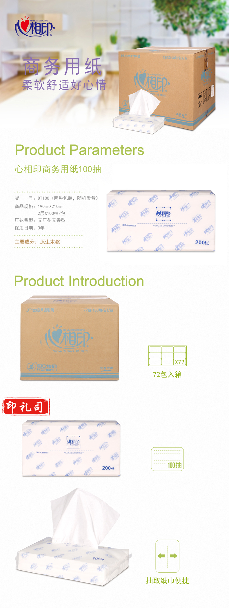 心相印 DT100 双层100抽/包*72包/箱 190mm*210mm