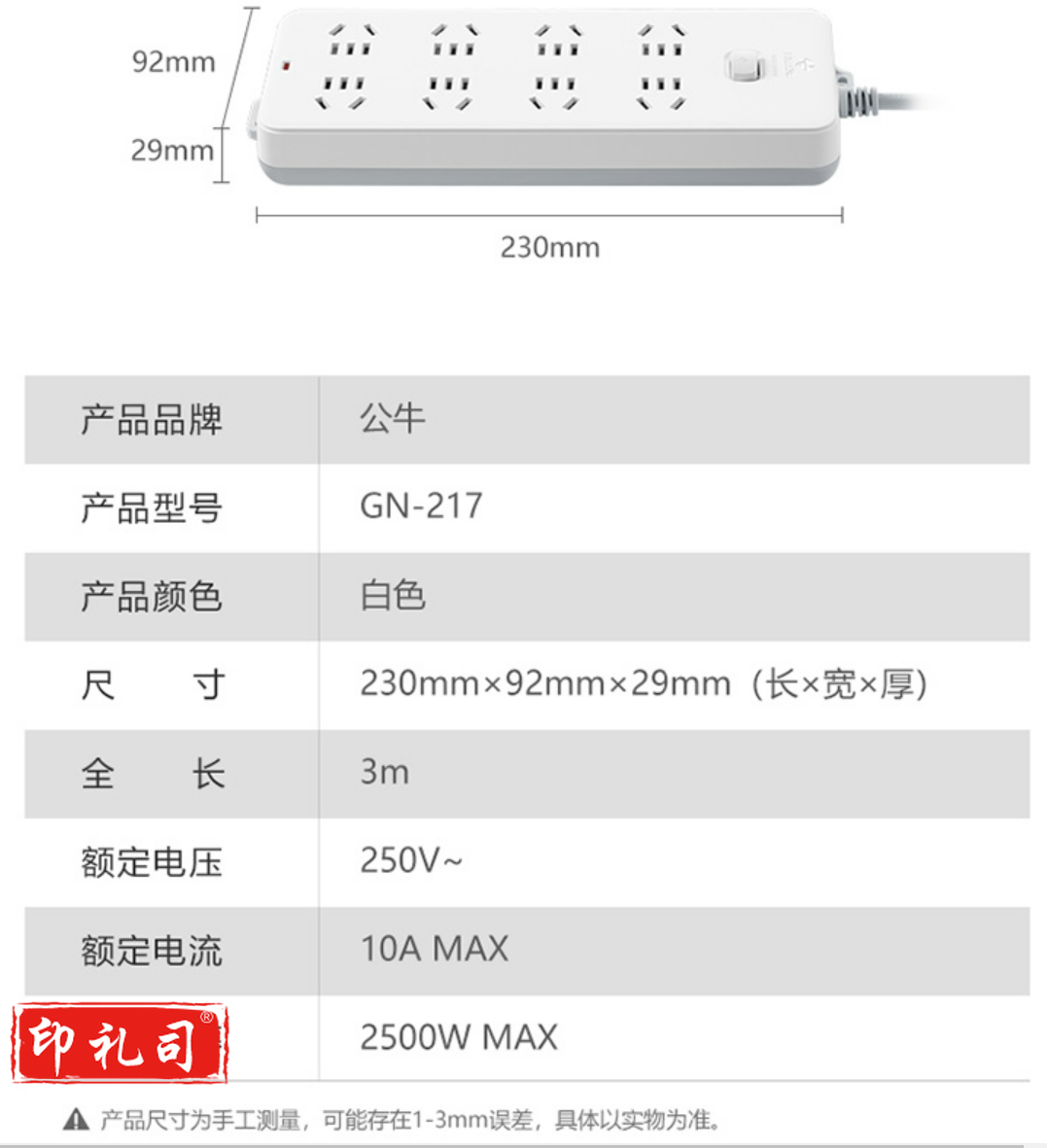 公牛(BULL) 过载保护插座//接线板8位总控全长3米 GN-217