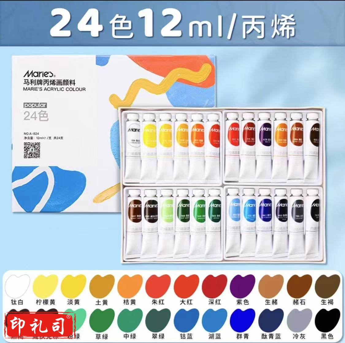 马利(Marie\\'s)丙烯颜料12ml24色儿童幼儿园彩绘涂鸦画手绘diy石头鞋子创意丙烯防水颜料