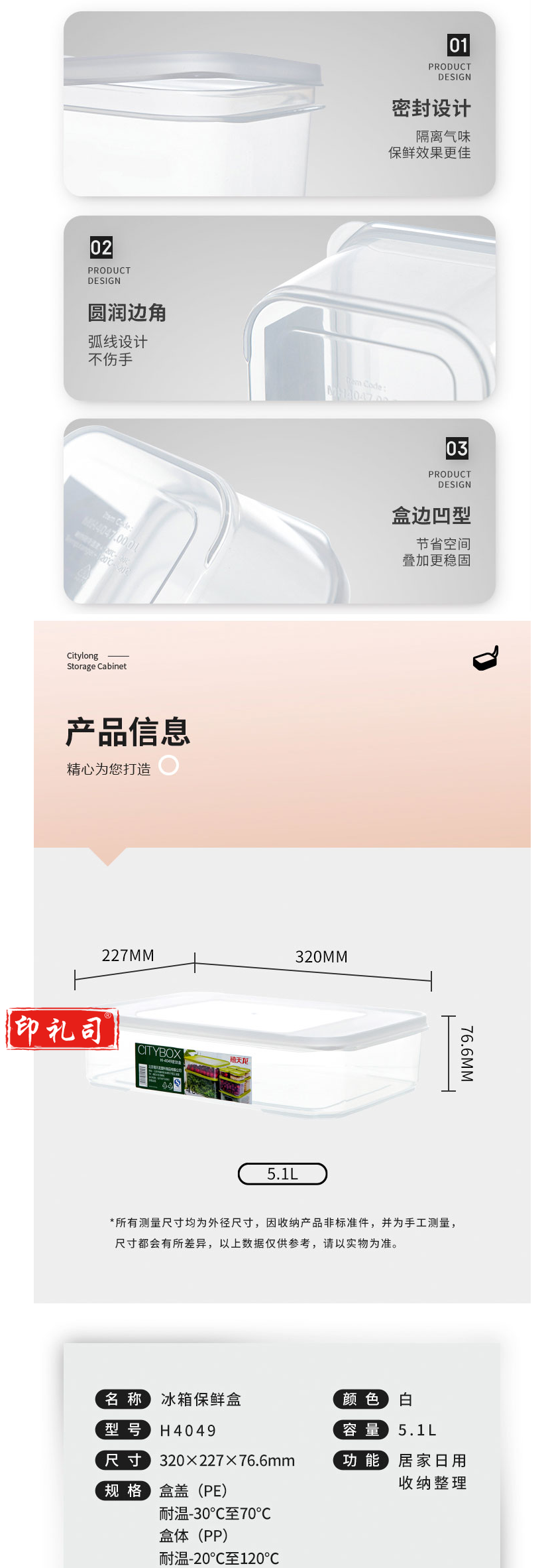 禧天龙保鲜盒冰箱收纳盒塑料保鲜盒储物盒密封盒 生鲜蔬菜水果冷藏冷冻盒 5.1L