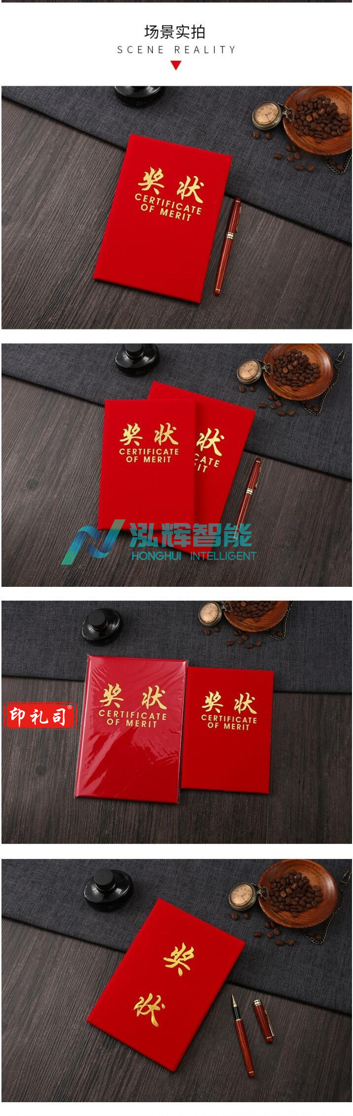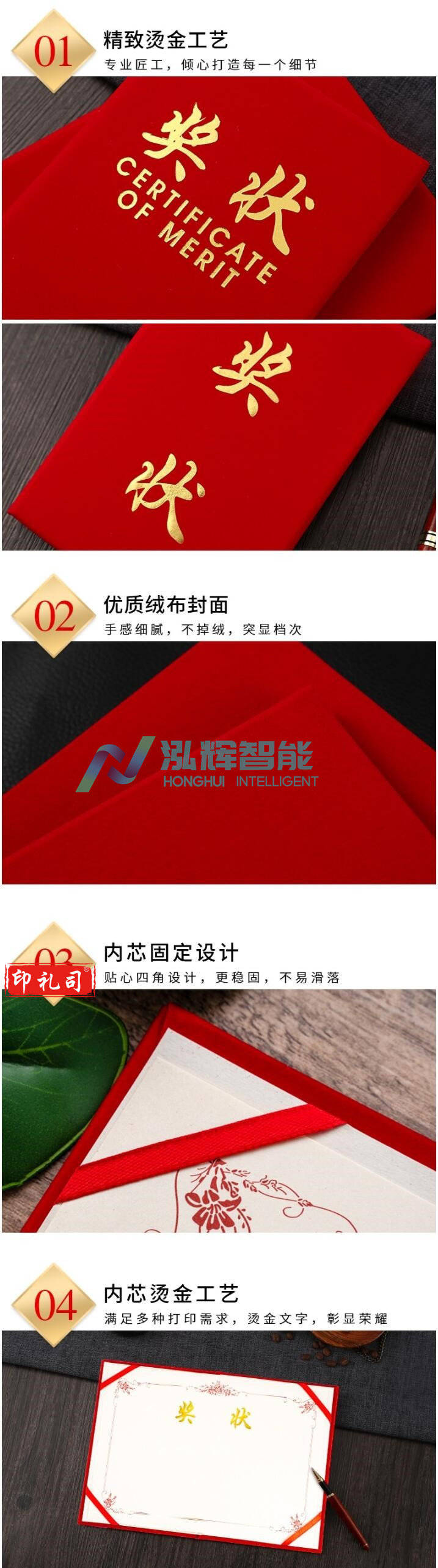 博采A4绒面奖状证书含内页红色(本)