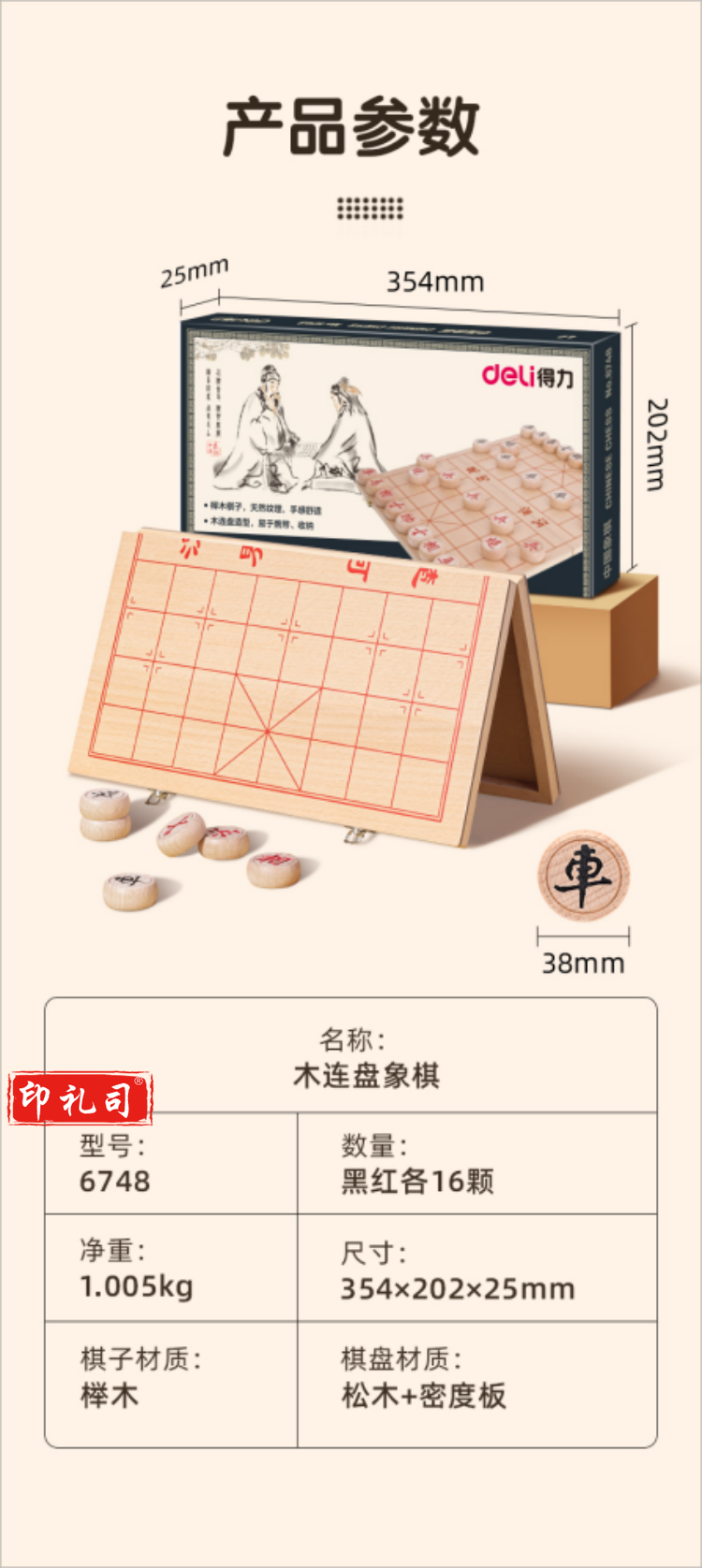 得力6748_40木连盘榉木中国象棋(原木色)(盒)