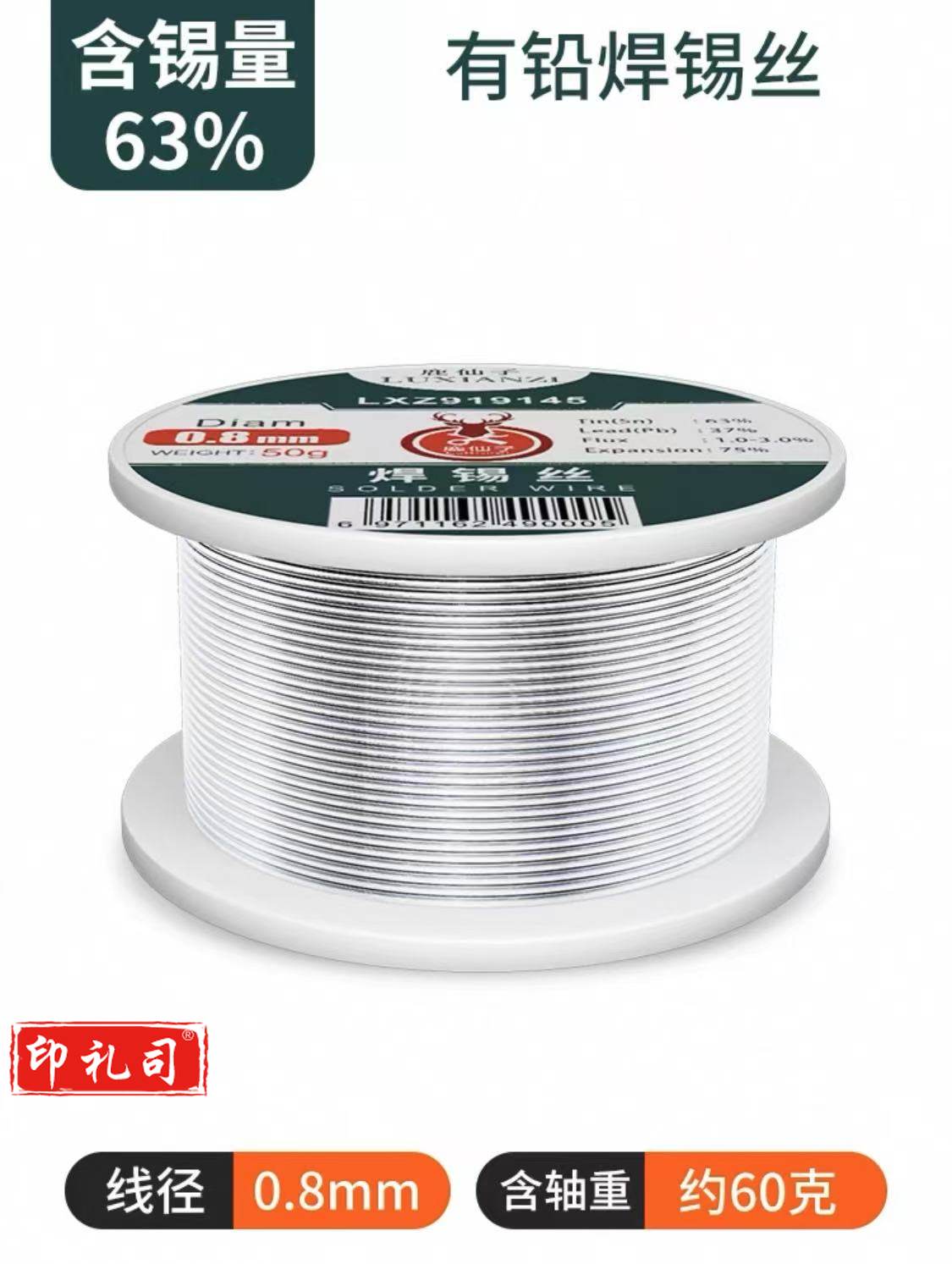 低温63有铅焊锡丝含锡63% 线经0.8MM 重量60G高纯度松香芯