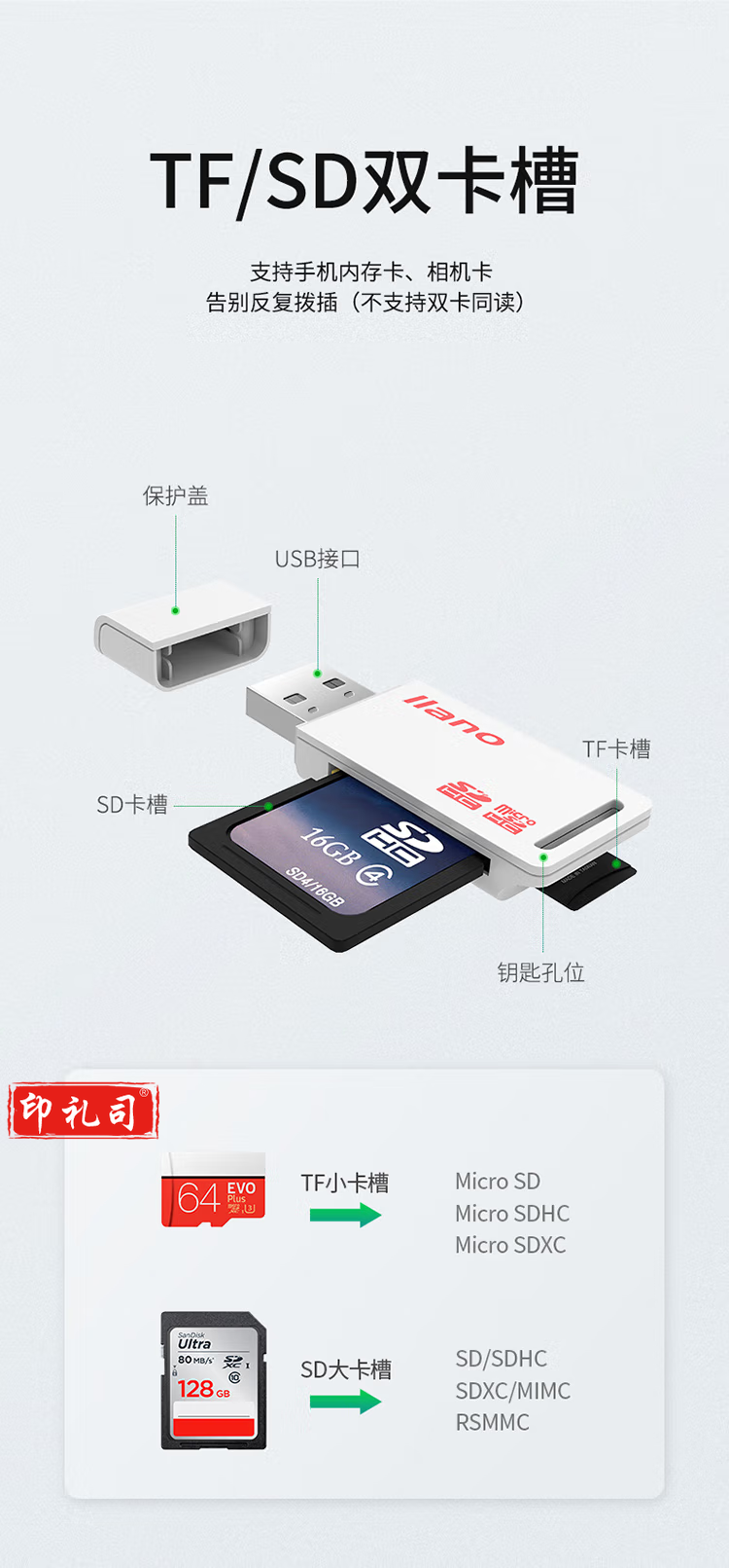 绿巨能(llano)读卡器 多合一 SD/TF读卡器 多功能相机手机读卡器 Micro SD读卡器 二合一