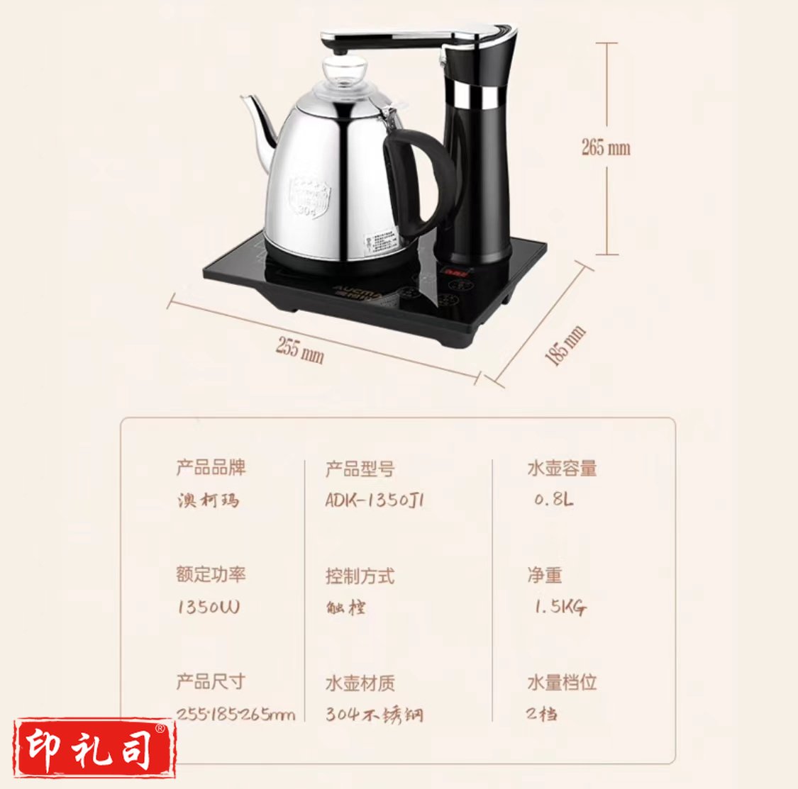 澳柯玛(AUCMA)自动上水电热水壶 304不锈钢/电茶炉烧水壶ADK-1350J1电水壶