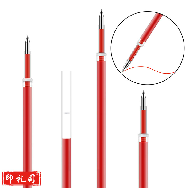 得力S782按动中性笔替芯0.5mm子弹头(红) 20支/盒
