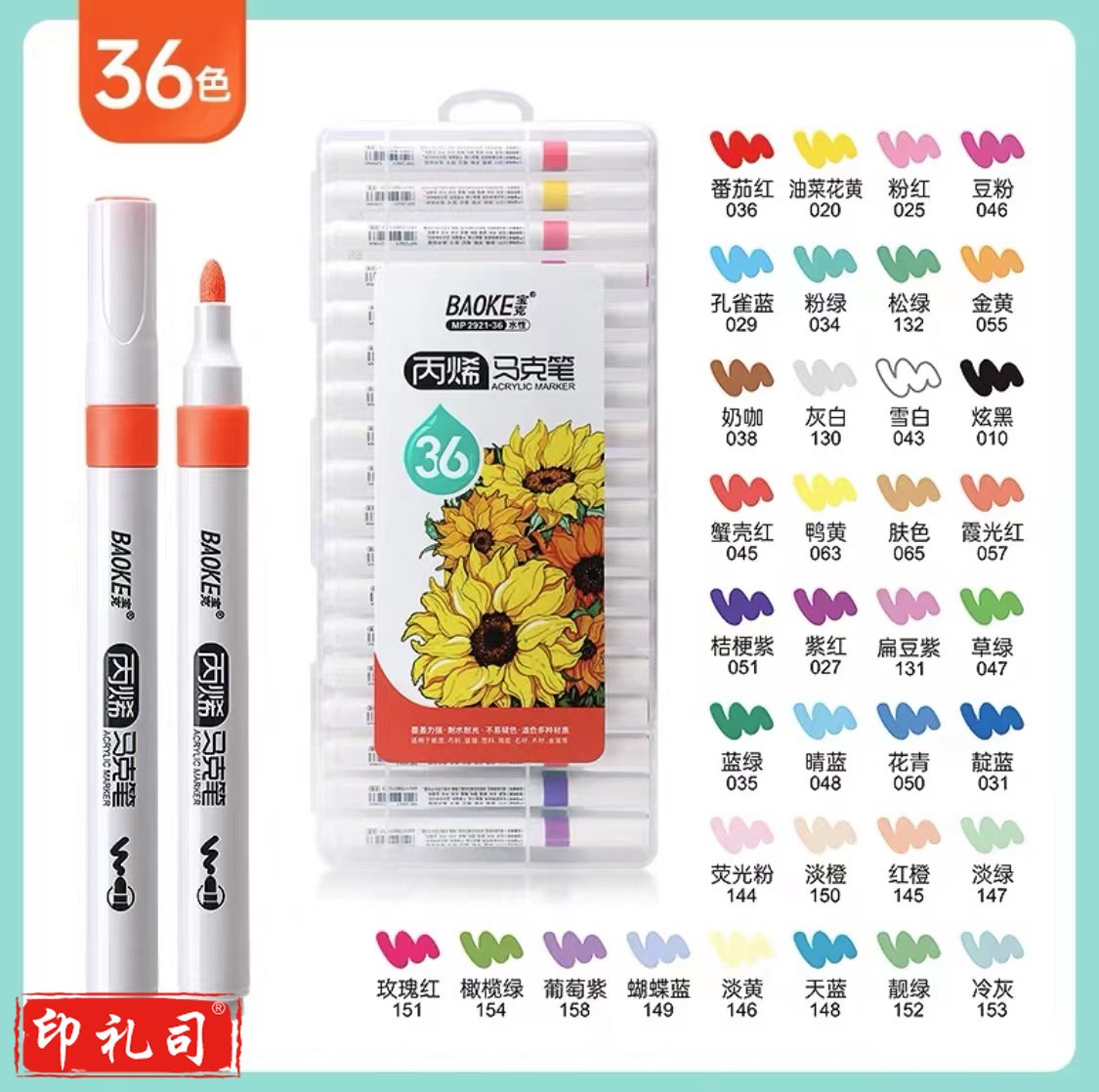 宝克丙烯马克笔套装 水性马克笔防水不掉色 36色丙烯笔套装