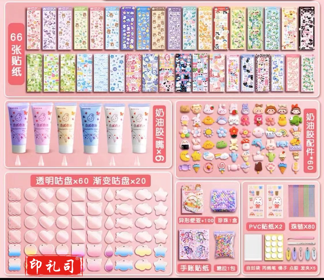 奶油胶咕卡套装贴纸全套大礼包随心配DIY材料手账玩具儿童饰品架子女孩女生咕咔贴画透明古卡盘超值收纳盒袋 369件咕卡套装+三层收纳箱