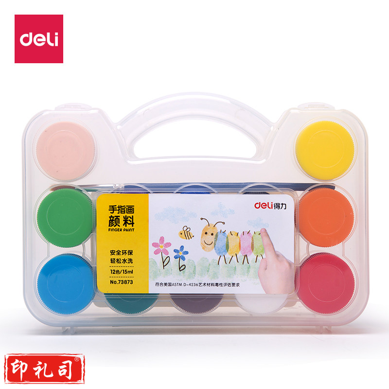 得力73873_12色PP盒手指画颜料(混)(12色/盒)