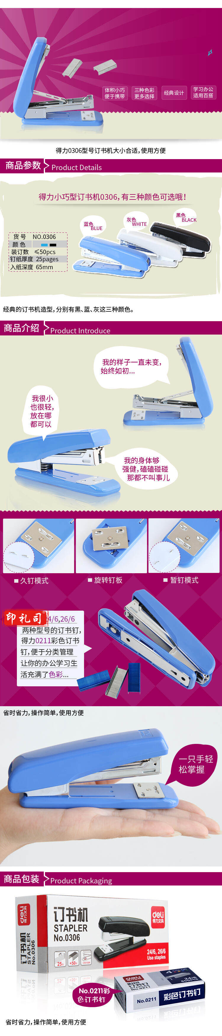 得力(deli)0306订书机12号钉书器装订机旋转钉板钉25页颜
