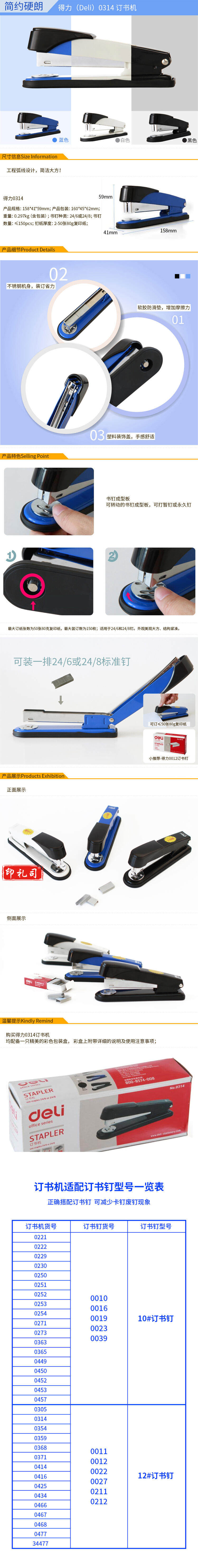 得力(deli)加厚订书机0314 可订50页学生办公用订书器中号大号省力型 厚层钉钉书器 金属款 1台