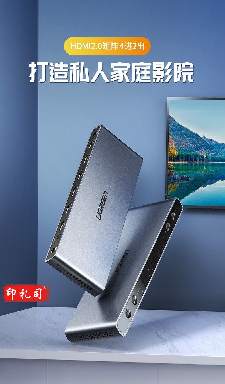 绿联 HDMI矩阵4进2出 hdmi2.0分配器切换器四进二出 3D视频切屏器 支持4K60HZ 黑色 70435