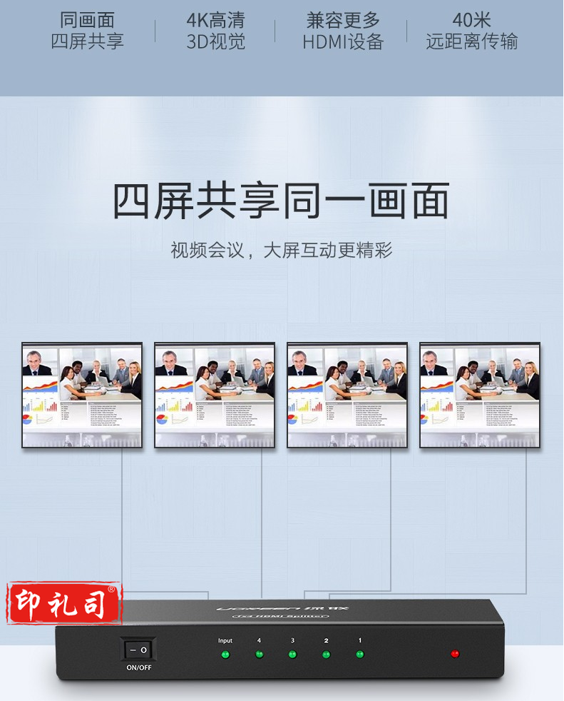 绿联 HDMI分配器一分四 一进四出4K数字高清视频分屏器 笔记本电脑电视盒子接显示器投影仪1进4出 一分四