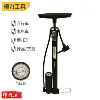 得力(deli)家用多功能手动打气筒 汽车自行车球类充气骑行装备配件便携式金属打气泵 DL-QT002 带气压表
