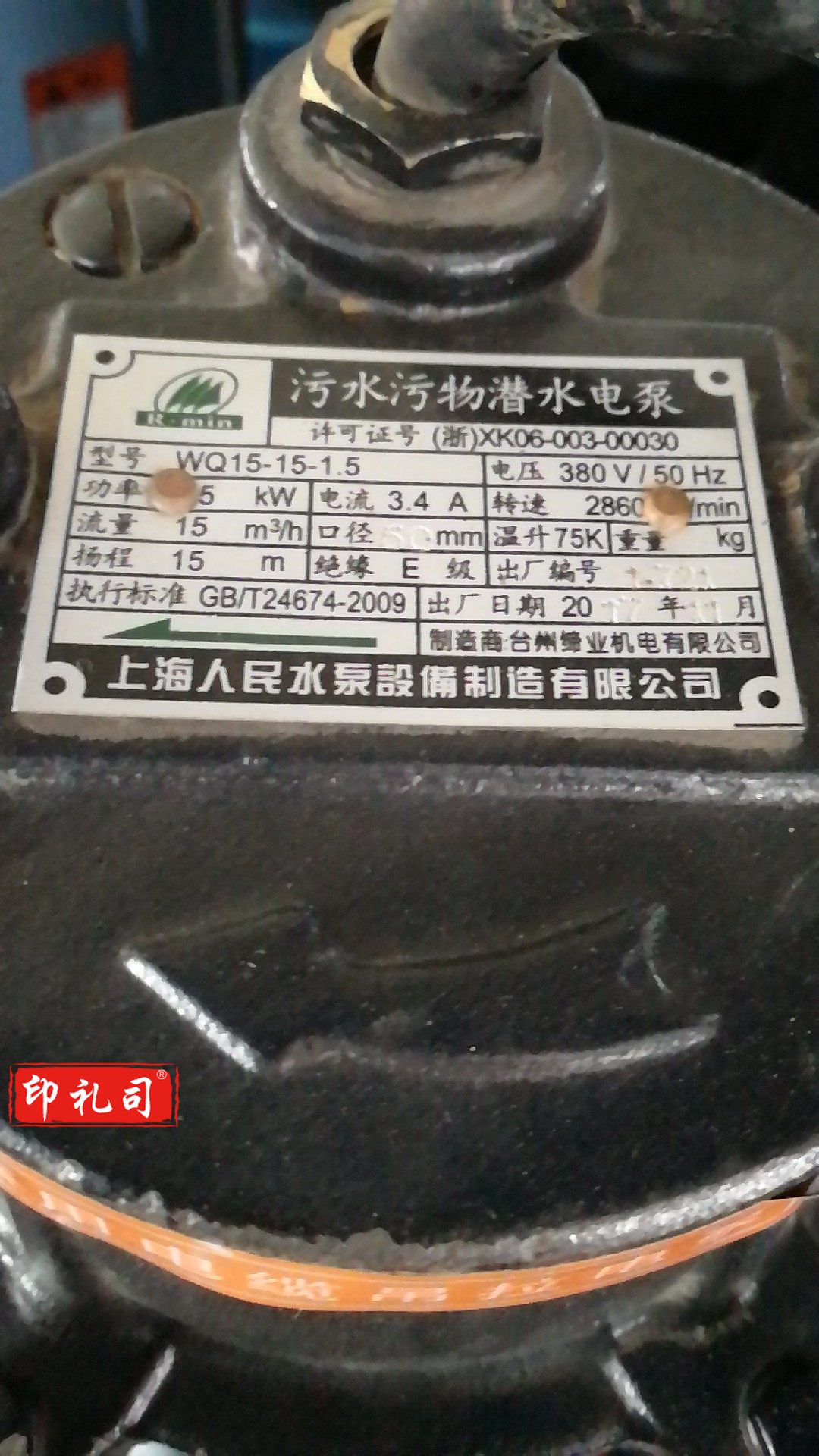 上海人民 污水污物 潜水泵 WQ15-15-1.5 2860/min 15m³/h 扬程15M
