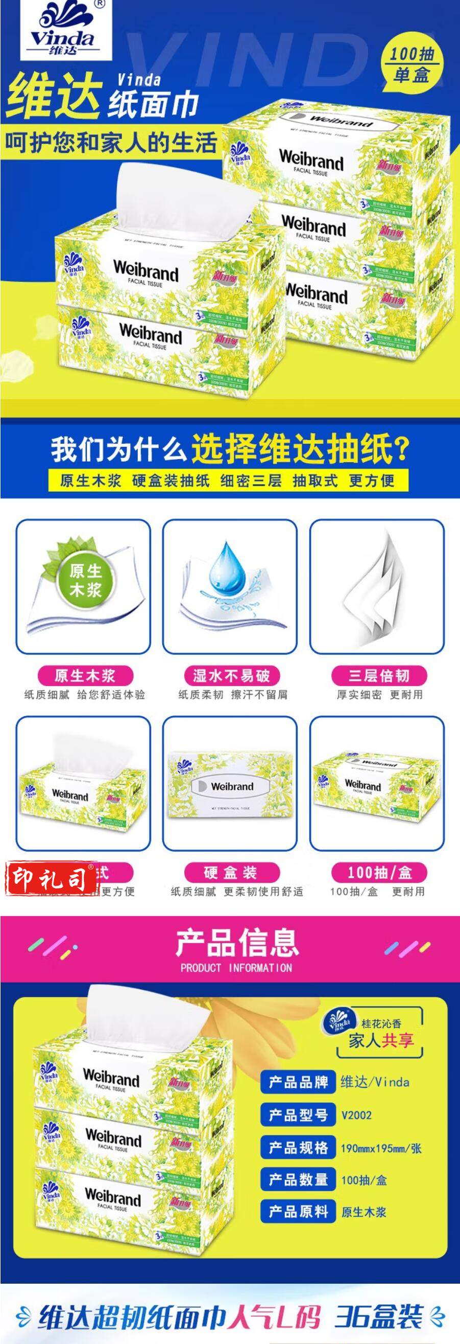 维达(Vinda) 盒抽面巾纸 V2002 三层100抽 5盒/提