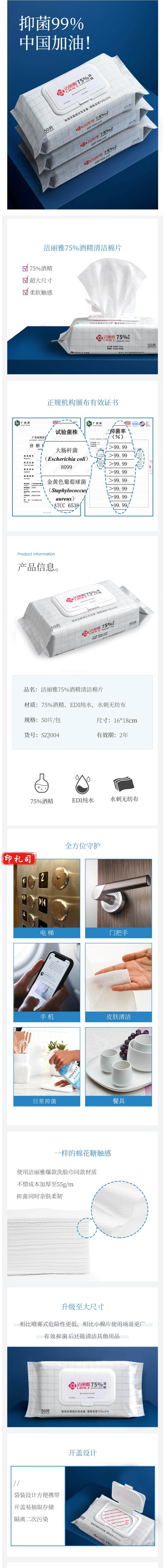 洁丽雅( Grace )酒精湿巾纸 消毒湿巾75% 酒精清洁湿巾 50抽 SZJ004